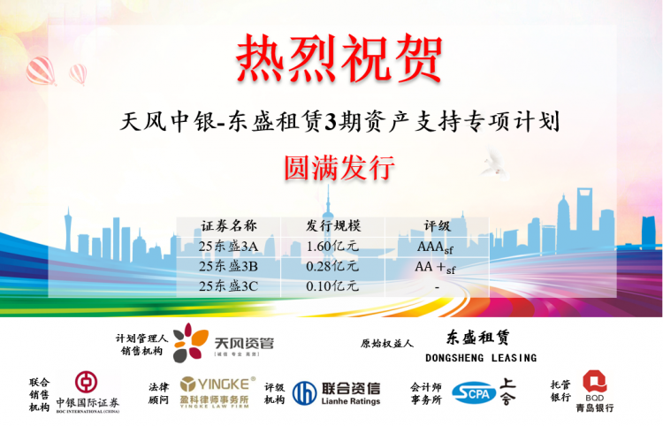 熱烈祝賀天風(fēng)中銀-東盛租賃第3期資產(chǎn)支持專項(xiàng)計(jì)劃圓滿發(fā)行